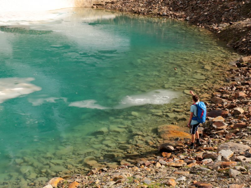 Vol afwisseling: ruig, steen en groen, met uitzicht op gletsjers. Geen zwemmogelijkheid