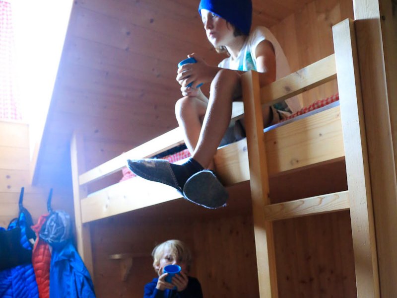 Onze 2 tieners die er eerst een beetje tegenop zagen, want ja: lopen, klimmen en dalen, slapen op een kamer met anderen, eten wat de pot schaft en ook nog eens geen WiFi. Wat is daar nu leuk aan?
